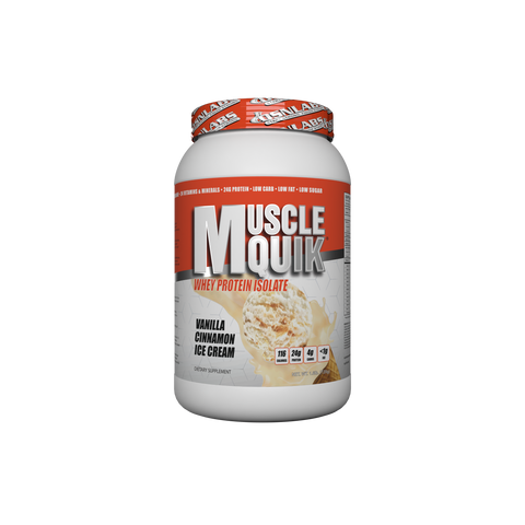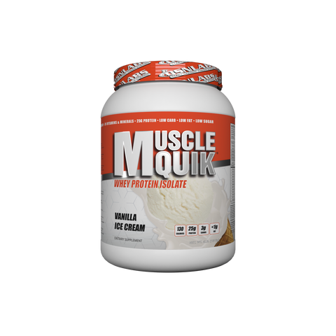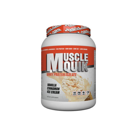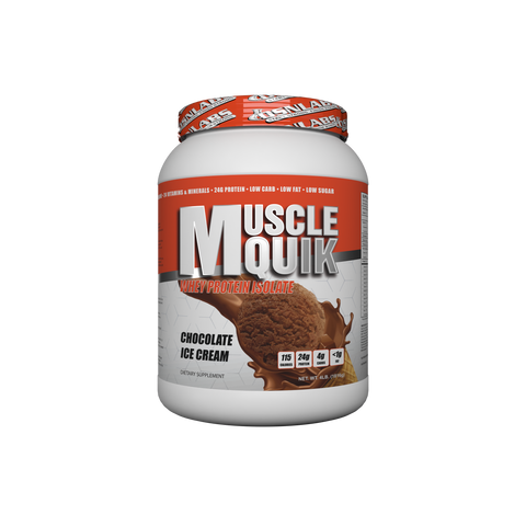SELL IT: MUSCLE QUIK IS A LOW FAT, LOW CARB, HIGH QUALITY WHEY PROTEIN ISOLATE. MUSCLE QUIK CONTAINS 24 ESSENTIAL VITAMINS AND MINERALS MAKING IT AN IDEAL MEAL REPLACEMENT OR PROTEIN SUPPLEMENT. MUSCLE QUIK CONTAINS ADDED GLUTAMINE AND BRANCH CHAINS FOR RECOVERY AND BUILDING LEAN MUSCLE.